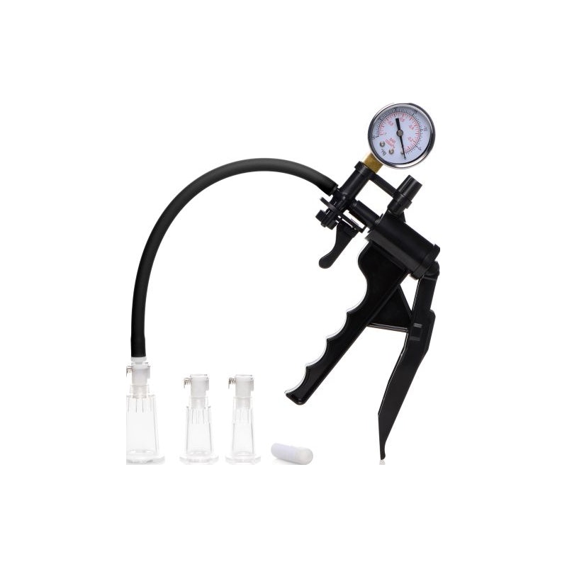 Increase your sensitivity with this clitoral pumping system! Choose between small, medium or large cylinders and feel free to use them on any small erogenous zone, such as your clitoris or nipples! Use the flexible silicone hose to attach the cylinders to the pumping system. Feel safe and in control with a built-in pressure gauge that lets you see how intense the pressure is, and you can play worry-free knowing that you can always use the quick release valve to release pressure immediately when it gets too intense!